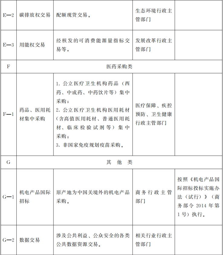 一、《目錄》內(nèi)依法必須招標(biāo)的項(xiàng)目應(yīng)當(dāng)進(jìn)入各級(jí)公共資源交易平臺(tái)交易,法律、法規(guī)、規(guī)章及國(guó)家有關(guān)行業(yè)行政主管部門另有規(guī)定的,從其規(guī)定。