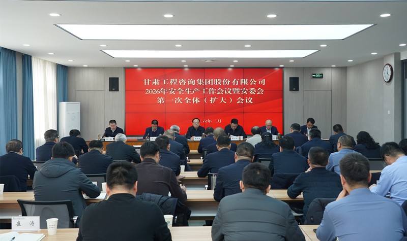 2月9日,甘肅工程咨詢集團召開2026年安全生產工作會議暨安委會第一次全體(擴大)會議,總結2025年度安全生產工作成效,分析當前安全生產形勢,部署春節前安全防范及節后復工復產安全生產工作。集團公司黨委書記、董事長張佩峰主持會議并講話,總經理、董事陳一夫出席會議,在家領導班子成員及高管參加。