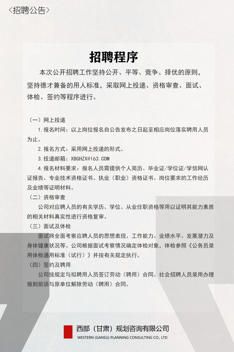 西部(甘肅)規劃咨詢有限公司2023年招聘公告
