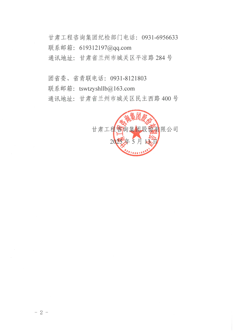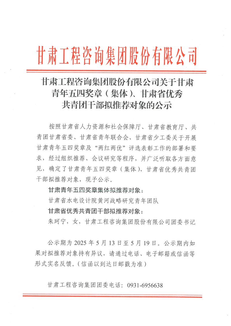 甘肅工程咨詢集團股份有限公司關于甘肅青年五四獎章(集體)、甘肅省優秀共青團干部擬推薦對象的公示