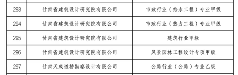 近日,住房城鄉(xiāng)建設(shè)部正式發(fā)布了《關(guān)于核準(zhǔn)2024年度第十二批建設(shè)工程企業(yè)資質(zhì)延續(xù)名單的公告》。省建筑設(shè)計院建筑行業(yè)甲級、風(fēng)景園林工程設(shè)計專項甲級、市政行業(yè)(給水工程)專業(yè)甲級、市政行業(yè)(熱力工程)專業(yè)甲級資質(zhì)通過核準(zhǔn)延續(xù)。