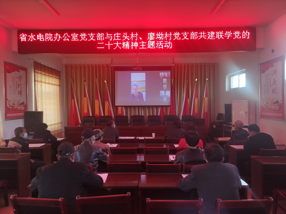 為持續促進黨的二十大精神學習貫徹走深走實,使黨的二十大精神進村入戶、深入人心,11月22日,甘肅省水利水電勘測設計研究院有限責任公司辦公室黨支部與幫扶村西峰區莊頭村黨支部、廖坳村黨支部開展共建聯學黨的二十大精神主題活動。