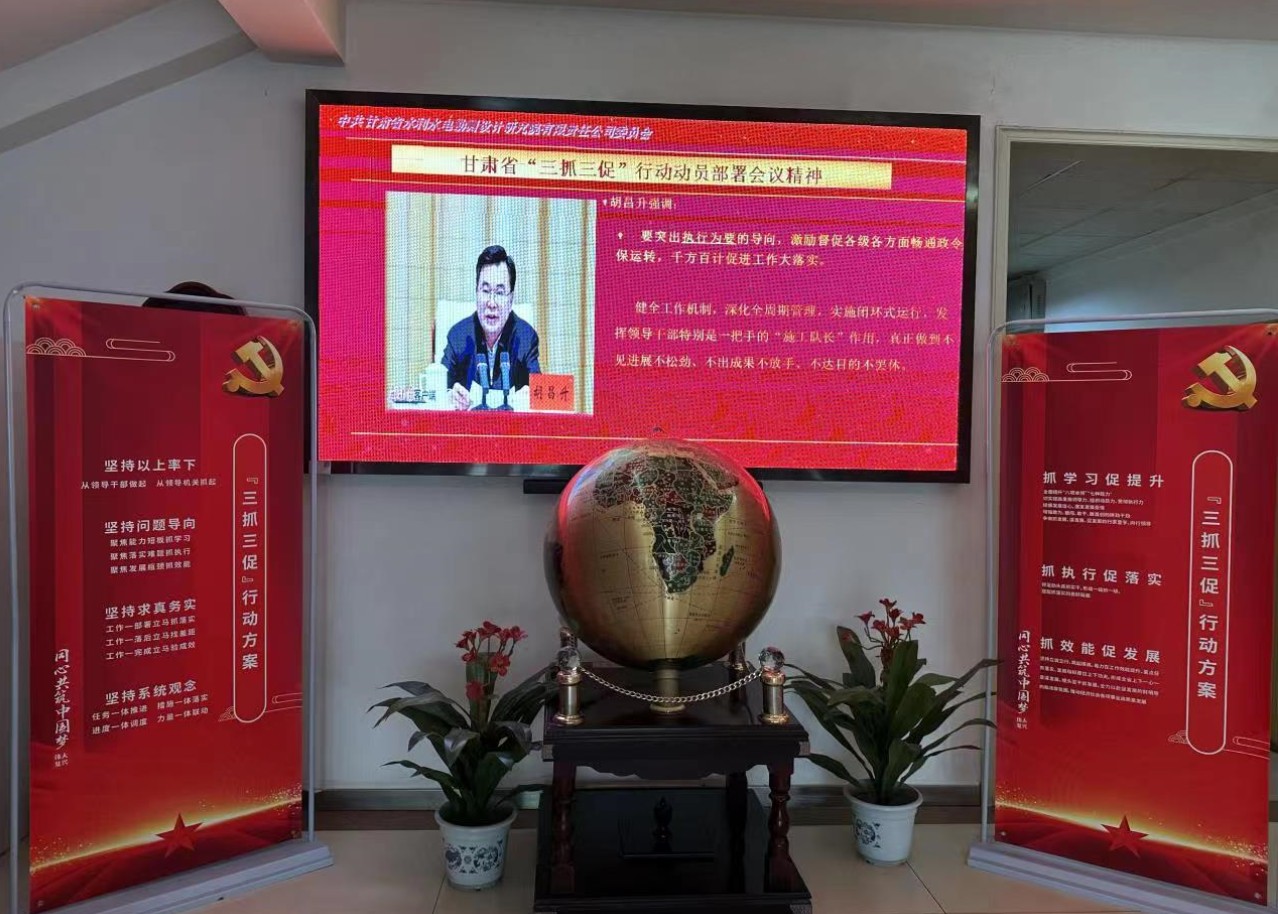 2月22日,召開黨委理論學習中心組會議,傳達學習全省“三抓三促”行動動員部署會議精神、《甘肅省“抓學習促提升抓執行促落實抓效能促發展”行動方案》《集團公司“抓學習促提升抓執行促落實抓效能促發展”行動實施方案》。會議指出,要以“三抓三促”行動為重要載體和抓手,本著“干什么、學什么,缺什么、補什么”的態度,以“三抓三促”行動為牽引,通過黨委理論學習中心組學習、支部“三會一課”和主題黨日活動等,充分利用好“學習強國”“甘肅黨建”等平臺,圍繞學習貫徹黨的二十大精神、習近平總書記對甘肅重要講話重要指示批示精神、中央即將開展的主題教育活動、新一輪國企改革及水利部、水利廳等行業政策精神,以學增智、以學修身、以學增才,用理論學習促進生產經營管理等各項工作,用業績成效檢驗學習實效,為奮力開創全省現代化建設嶄新局面貢獻水電設計院力量。